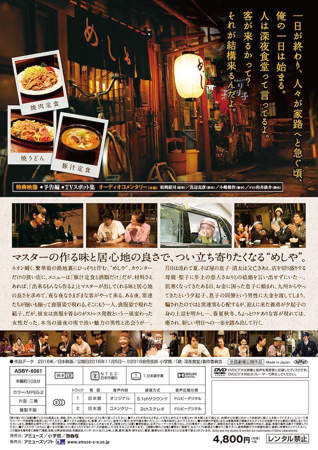 全世界シリーズ累計550万部突破! 日本を代表する国民的「食」コミック『深夜食堂』がスクリーンに帰ってきた! 「深夜食堂」が再び心と小腹を満たします ★豪華多彩なキャスト・スタッフ陣が集結! ますます深化する『深夜食堂』ワールド! ! ★本編DISC ・予告編、TVスポット集収録 ・オーディオコメンタリー (松岡錠司(監督)/真辺克彦(脚本)、小嶋健作(脚本)、ゲスト向井康介(ドラマ版脚本) 【ストーリー】ネオン瞬く、繁華街の路地裏にひっそりと佇む、“めしや"。 深夜0時から朝7時までやっていることから、人は“深夜食堂"と呼ぶ。 カウンターだけの狭い店に、メニューは「豚汁定食と酒類だけ」だが、材料さえ あれば、「出来るもんなら作るよ」とマスター(小林薫)が出してくれる味と 居心地の良さを求めて、夜な夜なさまざまな客がやって来る。 春、その夜は、常連たちが揃いも揃って喪服姿で現れ、めしやの中にも何となく 湿っぽい空気が漂う。そこにもう一人、喪服姿の女性客がやって来る。 だが、出版社で編集者をしている範子(河井青葉)は仕事のストレスが溜まると、 気分転換に喪服を着て街を出歩き、シメにめしやで焼肉定食を食べるという一風 変わった女性だった。そんなある日、彼女が担当していたベテランの作家が急死し、 通夜の席で中年男・石田(佐藤浩市)と出会う。 苦み走った渋い魅力に惹かれて……。 月日は流れて夏。ある夜、近所の蕎麦屋“そば清"の女将、聖子(キムラ緑子)が やって来る。17年前に夫を亡くして以来、店を守りながら、一人息子の清太(池松壮亮) を育ててきたが、出前など店の手伝いをしてくれるものの、暇さえあれば卓球場に 通う清太をいまだ子供扱いしていた。一方、清太は好物の焼うどんを啜りながら、 子離れしてくれない聖子に15歳年上の恋人さおり(小島聖)との結婚を言い出せず、 悩んでいるのだった……。 秋、お金に困った息子に頼まれ、九州からやってきたという夕起子(渡辺美佐子)。 息子の同僚という男性に大金を預けたというが、話を聞いためしやの常連たちは、 “来て来て詐欺"では? と心配する。だが、当の夕起子はあまり気にも留めず、 豚汁定食を美味しそうに頬張り、どこか他人事。そんな様子に常連たちも心配し、 交番の小暮巡査に頼んで、夕起子の家に連絡してもらうことに。迎えにやって来た 義弟・哲郎(井川比佐志)が夕起子の身の上を話した