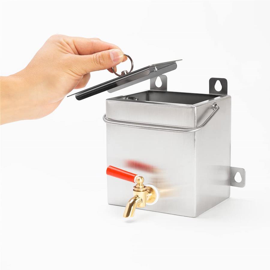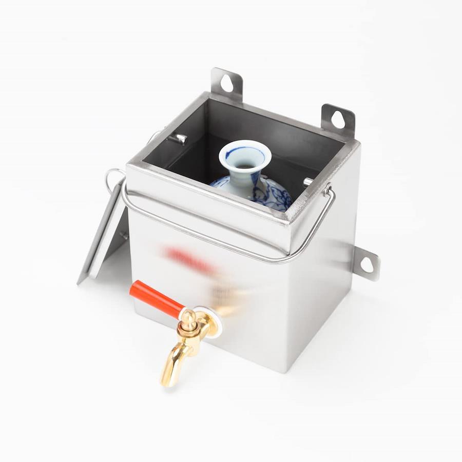 薪ストーブ専用ウォータータンク。ストーブの熱でお湯を沸かせます。リニューアルして高さが低くなり、とっくりを入れて熱燗ができる仕様になりました。 ハンドルが付いて持ち運びも楽に。開口部が広いのでお手入れも簡単です。 フックが4点になって、薪ストーブとの密着度、安定感を高めました。対応商品:薪ストーブMICRO / COZY / EMO / AURA / AURA ver.2 ※2020WIDE・OVENSTOVEにもご使用いただけますが、 ウォータータンク側のフック2点が余ります。COMPACTにはご使用いただけません。【Size】(全体)W16 × D14 × H15cm (タンク)W12 × D10 × H13cm【Weight】795g 【Material】ステンレス 【容量】1.4?