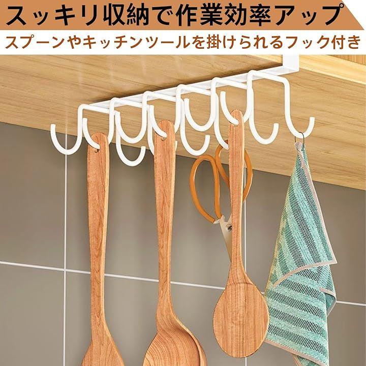 スッキリ収納で作業効率アップ スプーンやキッチンツールを掛けられるフック付き。
