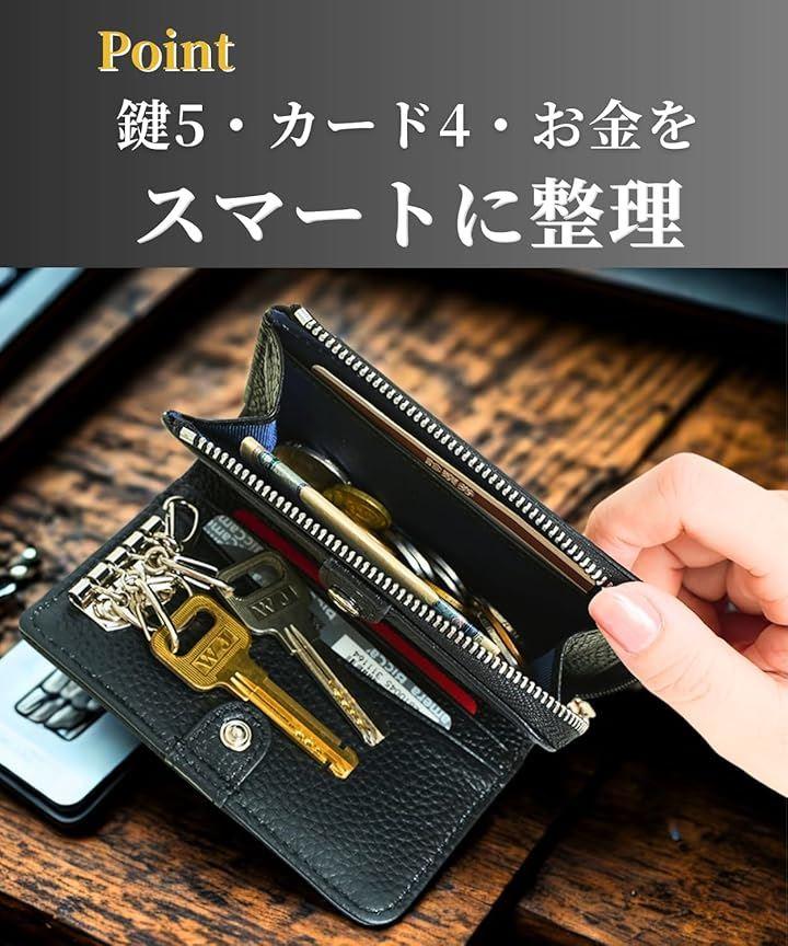 「多機能オールインワン収納」キーケース・財布・カードケースを一つにまとめた設計。