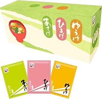 真空凍結乾燥のみそを使った粉末タイプのおみそ汁を3種類アソートにしました。「あさげ(合わせ)」16袋、「ひるげ(赤だし)」6袋、「ゆうげ(白みそ)」8袋の合計30袋入で、3種類の味が楽しめます。粉末タイプなので、サッとお椀に空けられて、お湯を注げばすぐに溶けてみその豊かな香りが広がります。忙しい朝、お弁当、オフィスなど、毎日のさまざまなシーンでお使いいただけます。