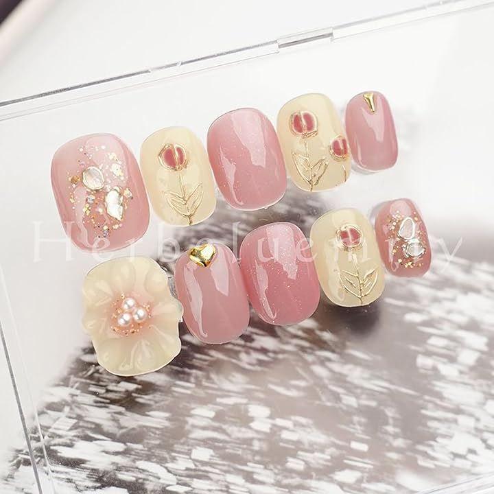 「ネイルサロンのようなおしゃれな指先に」手作り風のネイルチップは簡単につけ外しができるため、自宅で手軽に楽しめます。