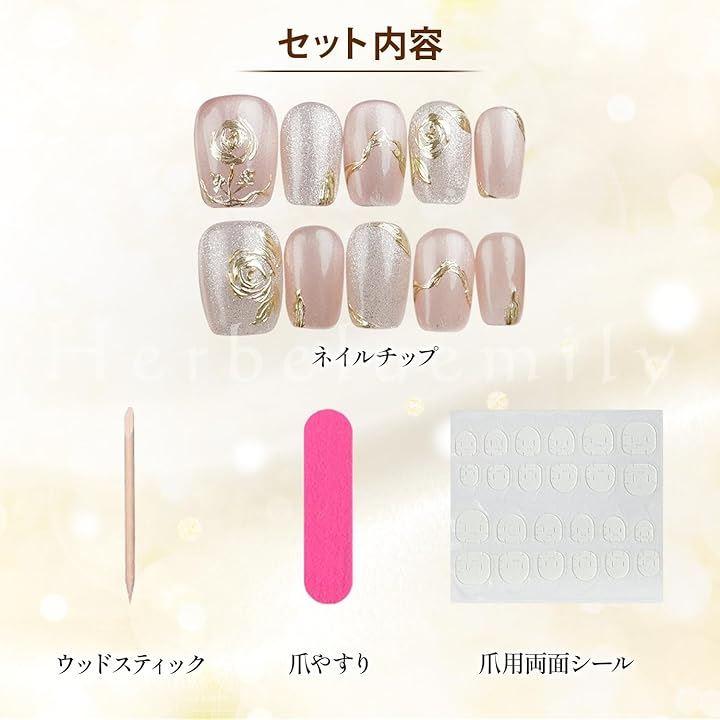 「ネイルサロンのようなおしゃれな指先に」手作り風のネイルチップはつけ外しが簡単、自宅で手軽に楽しめます。