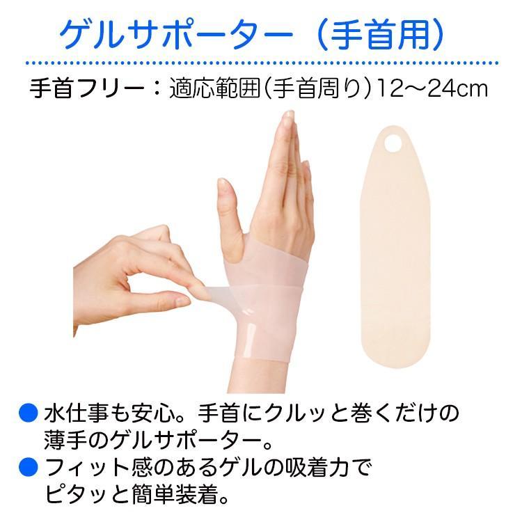 クルッと巻くだけゲルサポーター。水仕事もOKで日常使いに最適!●ゲルの吸着力でピタッと装着。フィット感のある薄手のゲル素材により、お好みの強さで手首をしっかり固定し、手首の違和感をしっかりサポート。手首にくるっと巻いて簡単装着。●伸縮性抜群。●くり返し使用可。●目立ちにくい。●左右兼用・男女兼用。