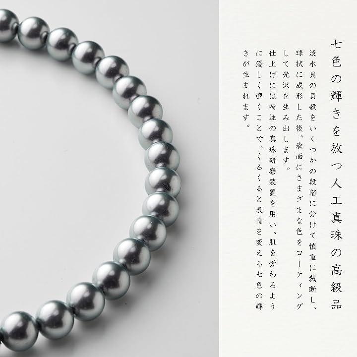 淡水貝であるイケチョウ貝(池蝶貝)を貝核に使用した純日本製の貝パールネックレス。