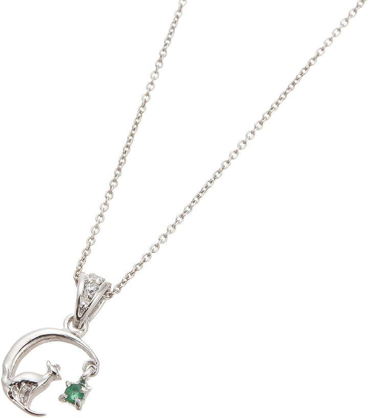 揺れる誕生石が選べる三日月にお座りしているネコモチーフのネックレスです。