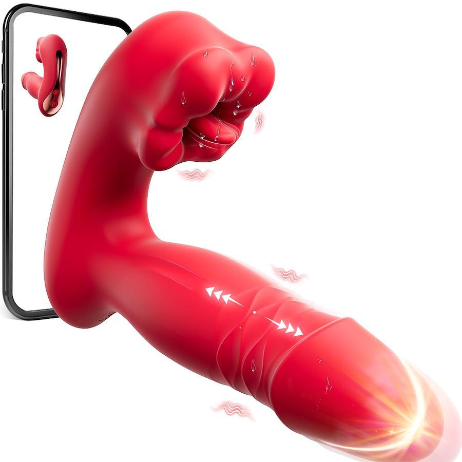 [New for 2025] 4-in-1 Vibrator, Rotor, Dildo, and Tongue Licking: 9 Vibrations, 9 Tongue Licking, and 9 Pistons + 42°C Intelligent Heating + Remote Control with Smartphone App for Squirting. Powerful and Quiet. Popular Adult Toy for Women.