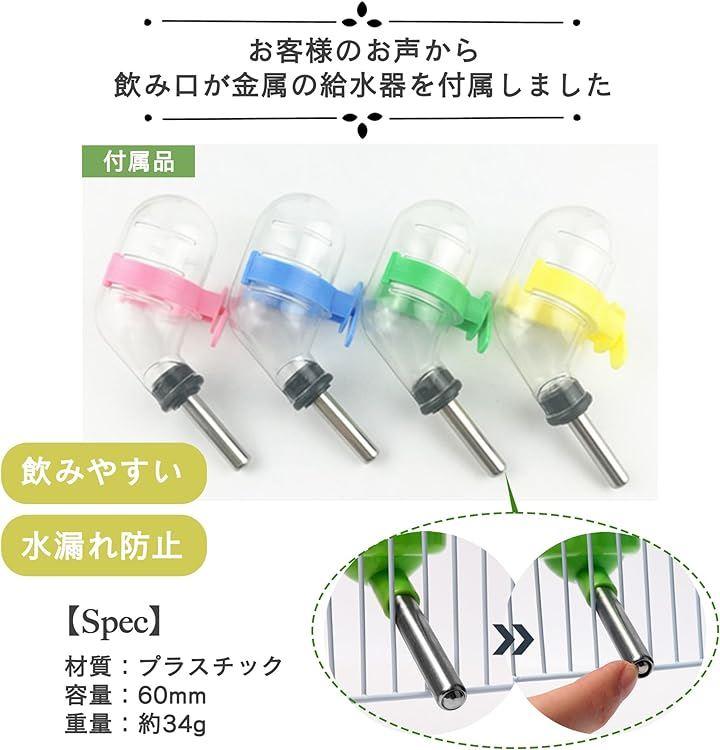 「注意事項」狭い空間での長時間の使用は、小動物がストレスを感じてケージを噛む可能性があります。