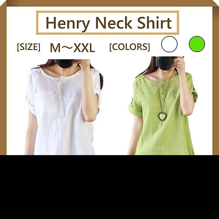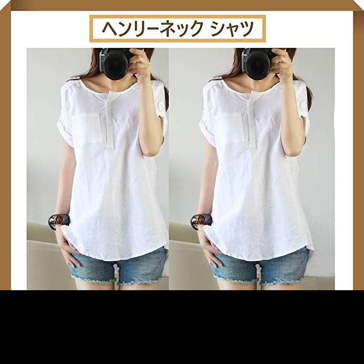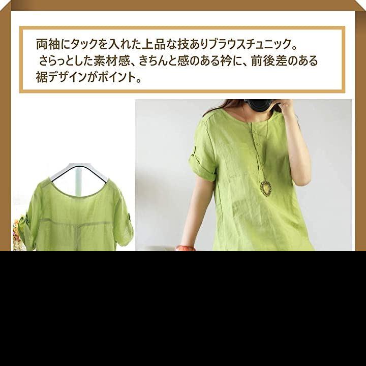 [1/2style(ニブンノイチスタイル)]半袖オシャレ綿麻カッコイイロングヘンリーネックシャツチュニックレディース
