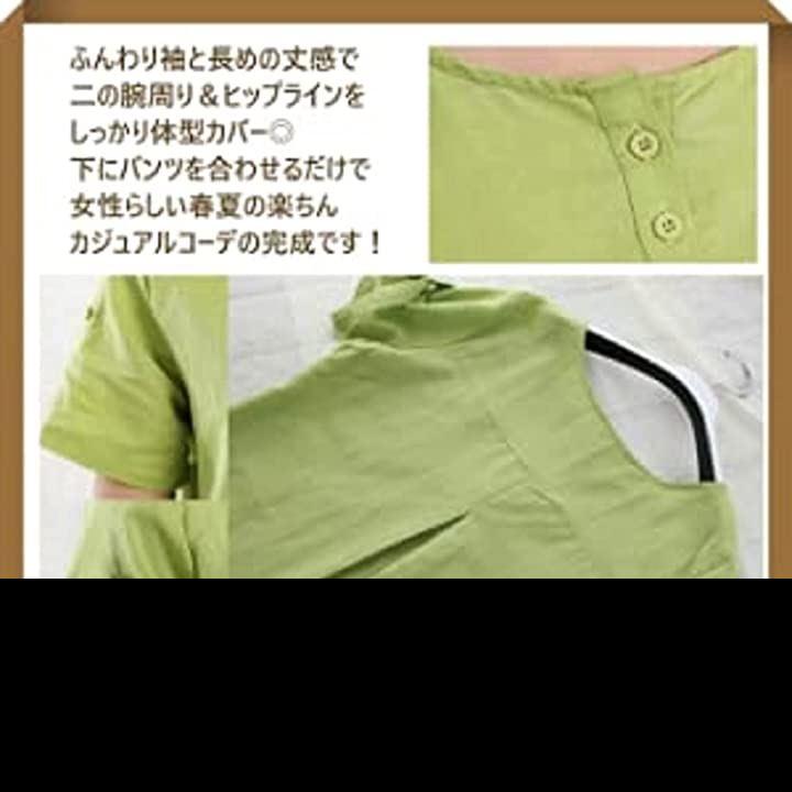 ・ふんわり袖と長めの丈感で二の腕周り&ヒップラインをしっかり体型カバー・下にパンツを合わせるだけで女性らしい春夏の楽ちんカジュアルコーデの完成です。
