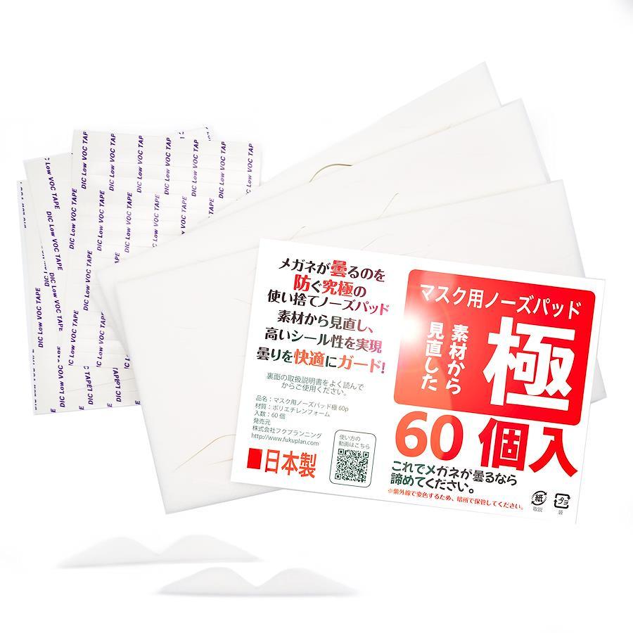 ノーズパッド マスク用 メガネ 曇り止め 極 白色 お徳用60個入 日本製 マスクパッド