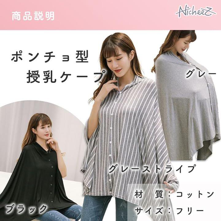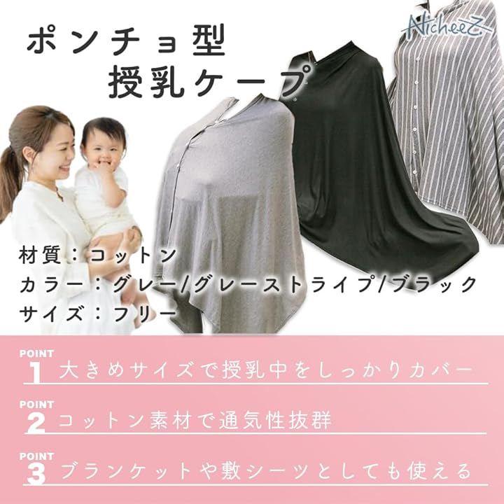 「商品内容」ポンチョ型授乳ケープ 材質:コットン カラー:グレー/グレーストライプ/ブラック サイズ:フリー