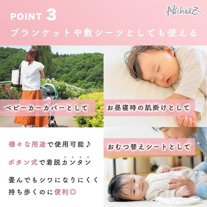 「ブランケットや敷シーツとしても使える」授乳ケープ以外にも、ベビーカーカバーやお昼寝時の肌掛け、おむつ替えのシーツなど様々な用途でお使いいただけます。