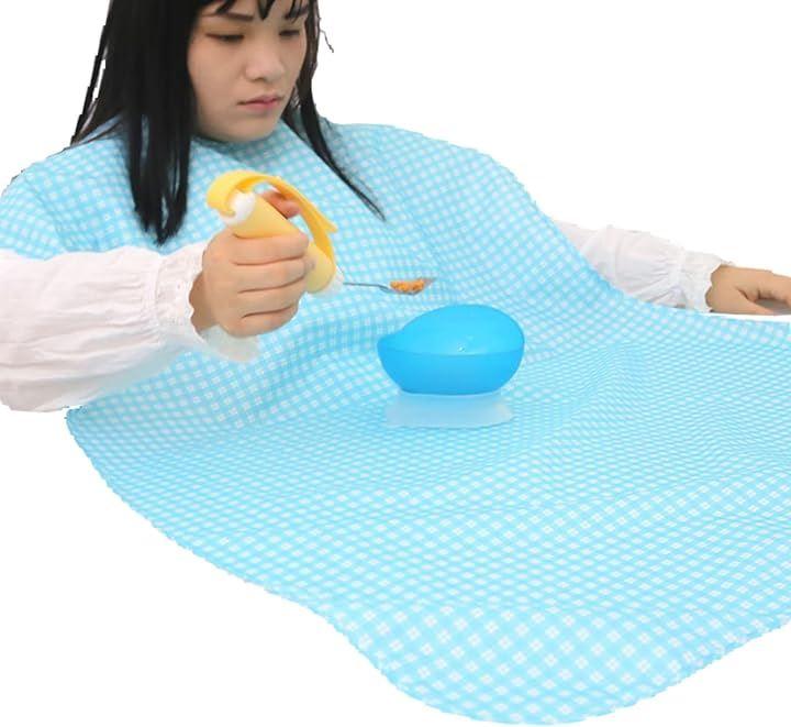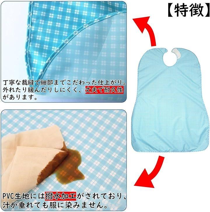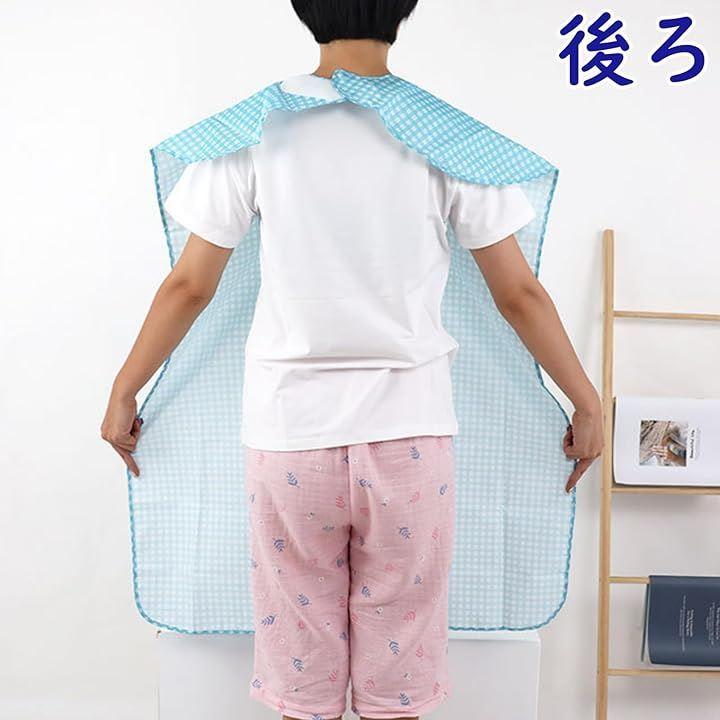 この商品は、介護時に高齢者や患者が食事をする際に、食べこぼしの汚れを防止する介護補助具の食事エプロンです。