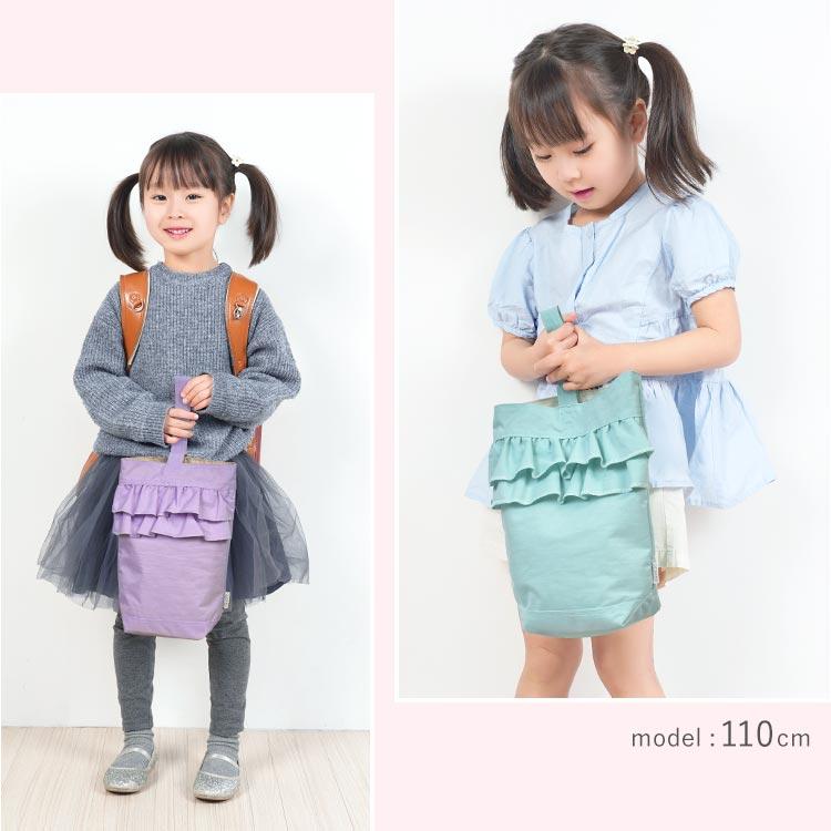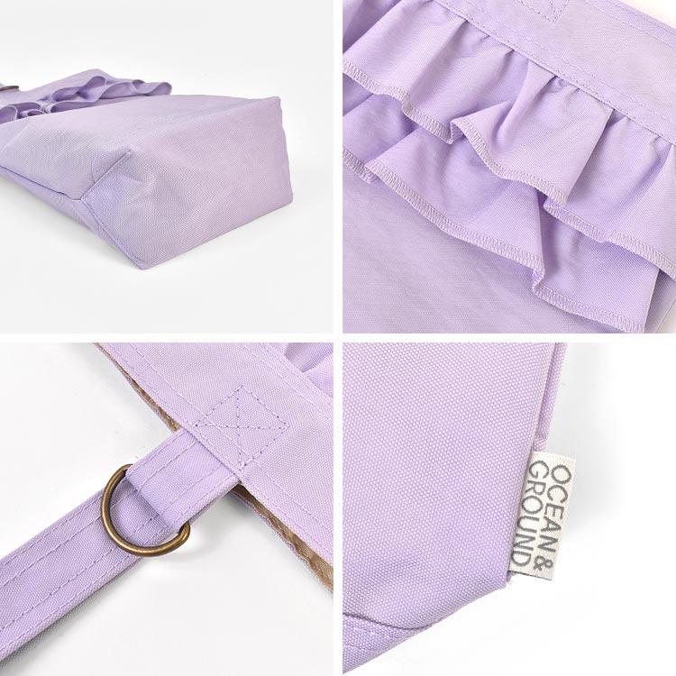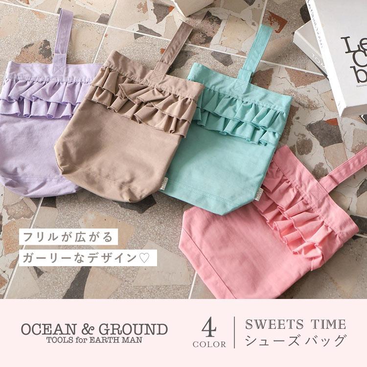 【SWEETS TIME シューズバッグ 】Ocean&Groundの人気シリーズ「SWEETS TIME」のショルダーバッグ。正面にあしらった2段フリルが目を引く、ガーリーでかわいいデザインです♪軽くて丈夫なナイロン素材を使用し、お子さまの負担も少なめ。内側にはネームホルダー付きで、プライバシーにも配慮しています。