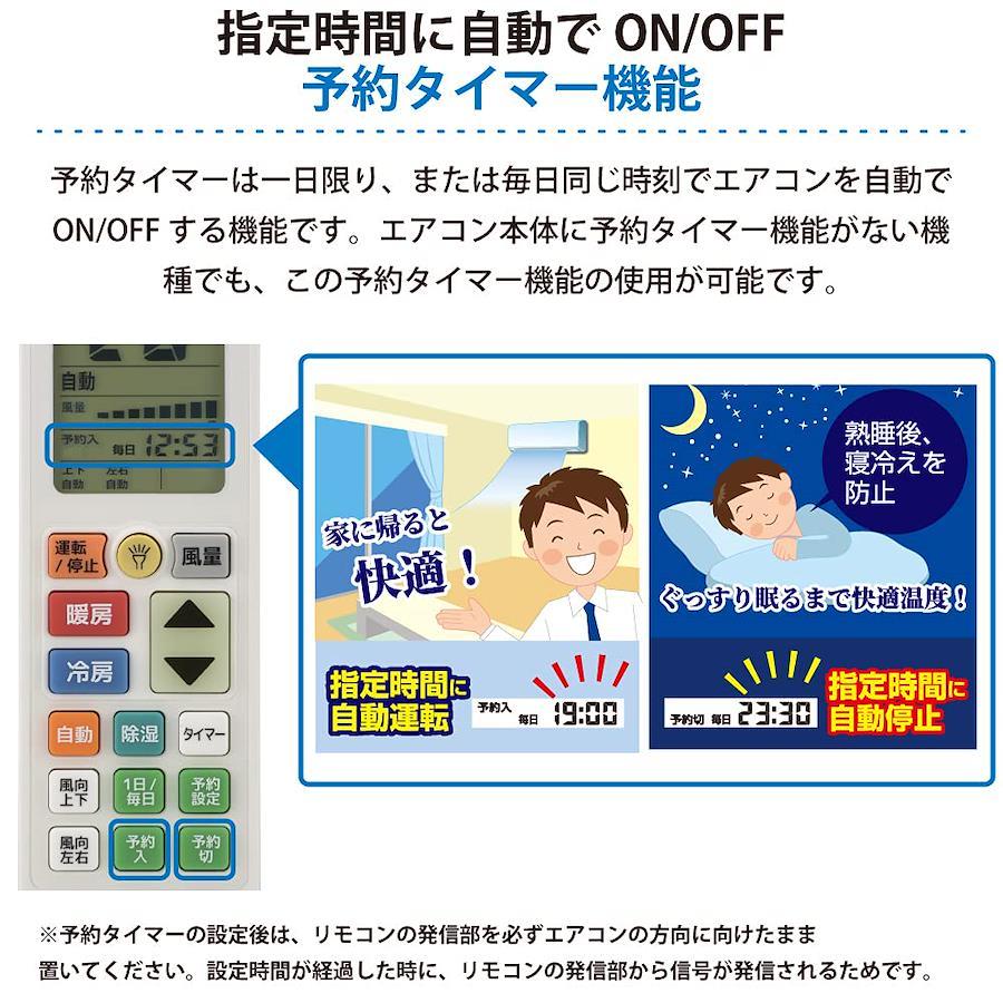 ●本機は2019年12月までに発売された機器をもとに開発を行っております。一部対応できない機種がありますので、ご了承ください。●簡易タイマーおよび予約タイマーの設定後、リモコン発信部を必ずエアコンの方向に向けたまま置いてください。設定時間が経過した時に、リモコンの発信部から信号が発信されるためです。