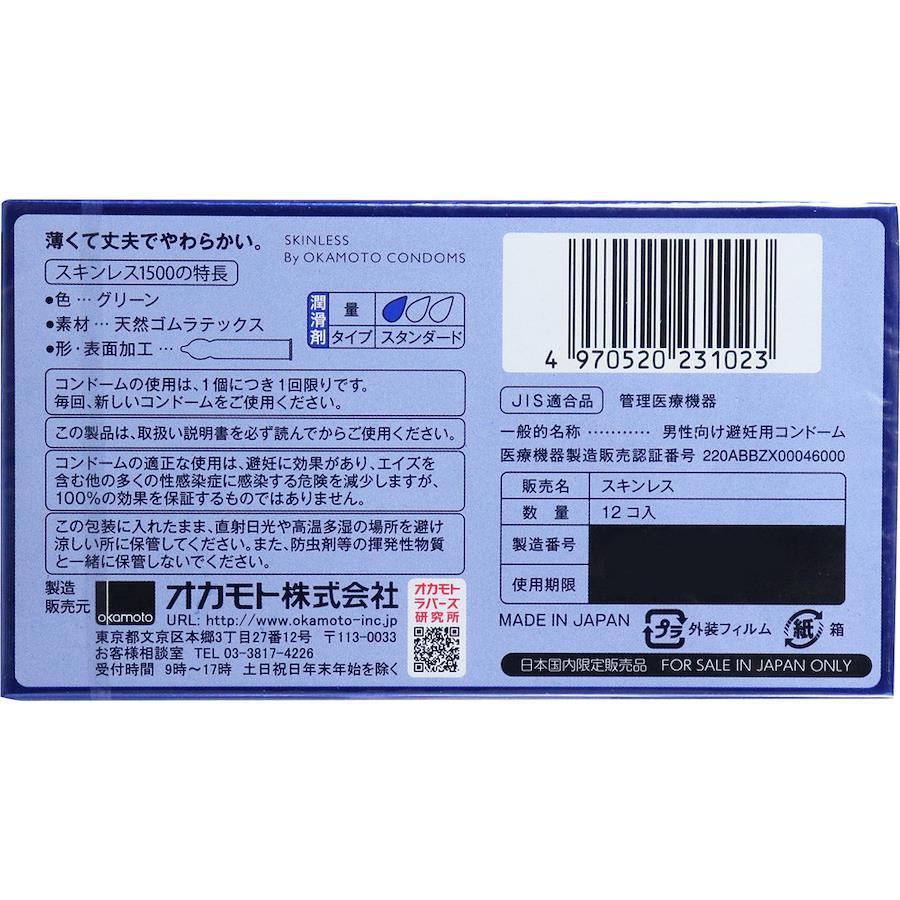 5%OFFセールオカモト スキンレススキン1500 コンドーム 12個入薄くて丈夫でやわらかい。