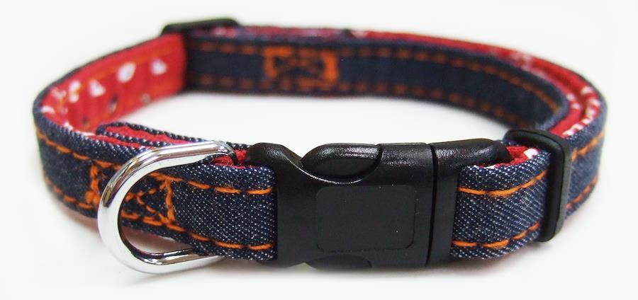 ご注意 : 犬、猫以外にはしようしないでください。適用サイズ以上の犬には使用しないでください。また適用内であっても、犬の力が強いと判断される場合にも使用しないでください。事故防止のため毎日点検し、キズ、伸びなどがある場合は使用しないでください。無理に引っ張ると、抜ける場合がありますのでご注意ください。犬が噛むと切れたり破損します。噛み癖のあるペットには十分注意してください。首輪のサイズは、首を締めつけないよう指が2~3本入るくらいが適当です。デニム素材は生地の特性上、色落ちや色移りします。特に雨や水にぬれた場合は、直ちに用品を取り外し、よく乾かし色落ちしないことを確認してからご使用ください。