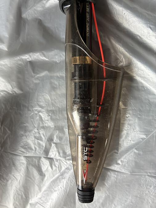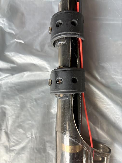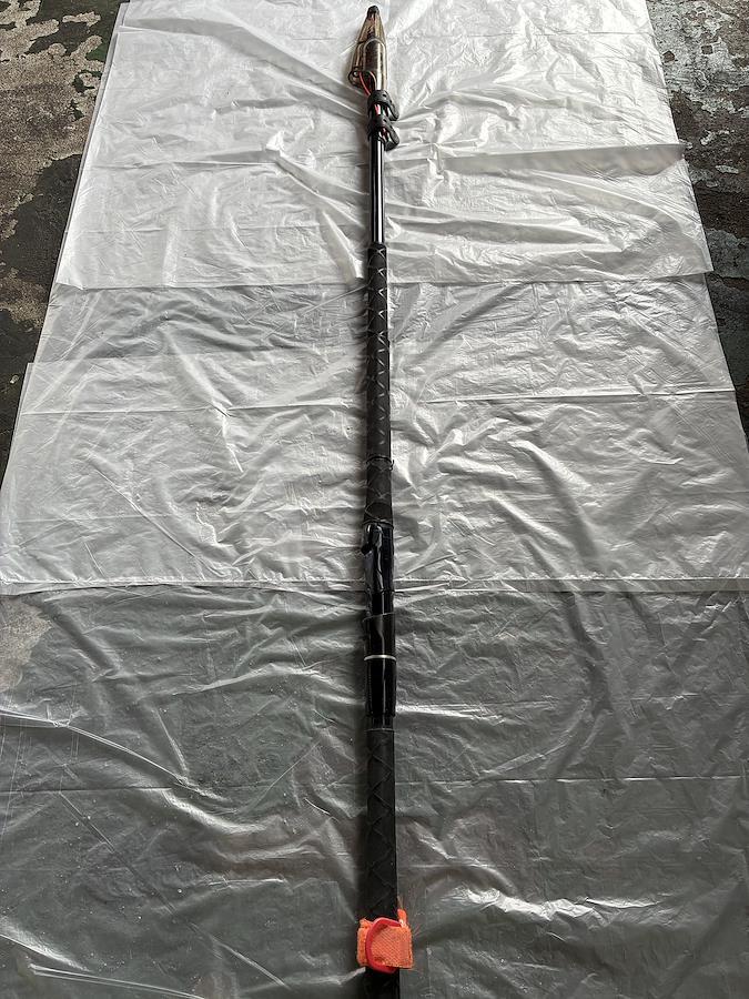 中古品の釣り竿OLYMPIC JUST SET LINEです。振り出し式の釣り竿です。グリップが巻いてあり、種類は不明ですが閉じた状態の長さは110㎝です。使用による小傷はあります。中古品にご理解いただける方のご購入お願いします。