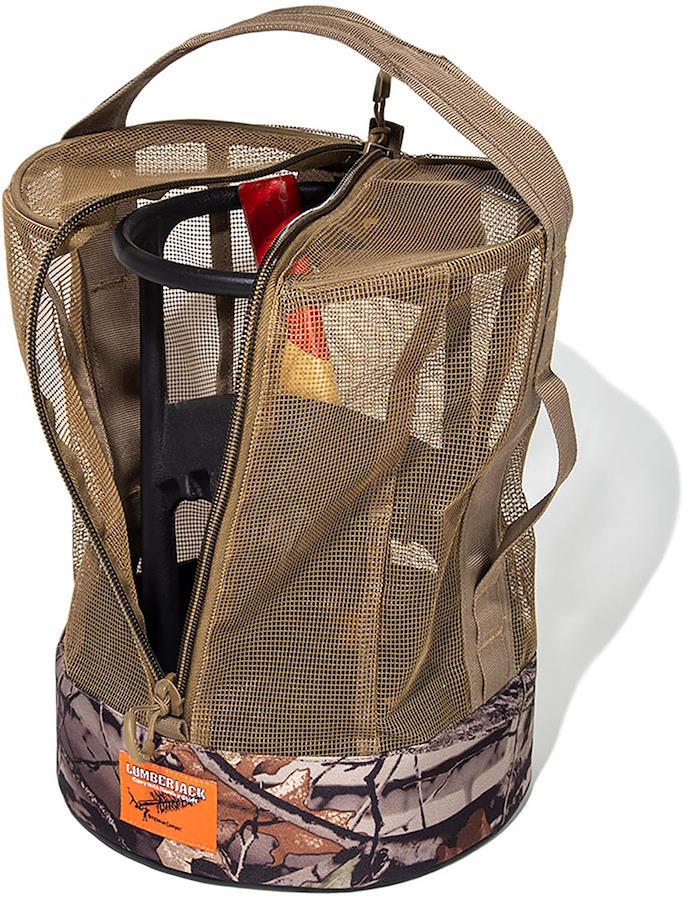重量のあるメタル製薪割り器入れ、ウッドチョッパーキャリーです。丈夫なPVCコーティングメッシュ生地で、薪割り器をしっかりガードするだけでなく、車や一緒に車載した他のギア類を傷付けません。ラージサイズのセンタージッパーを採用し、出し入れもスムーズです。