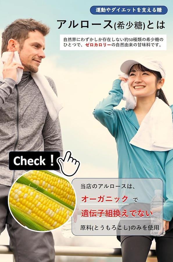 原材料:有機アルロース(有機トウモロコシ澱粉由来)(遺伝子組み換えでない)