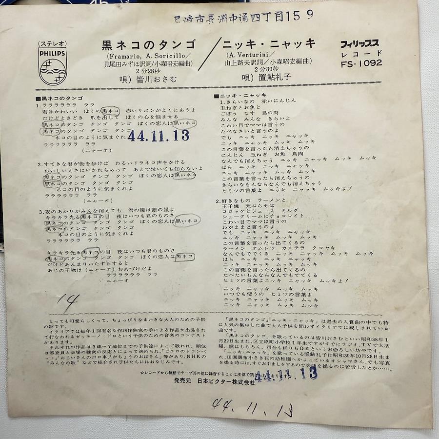 Osamu Minagawa "Black Cat Tango" Nikki Nyakki Showa Era Vintage EP Record 7-inch Single Extended Play