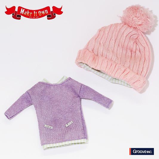 カジュアルなニット帽とニットワンピースのセットが登場。