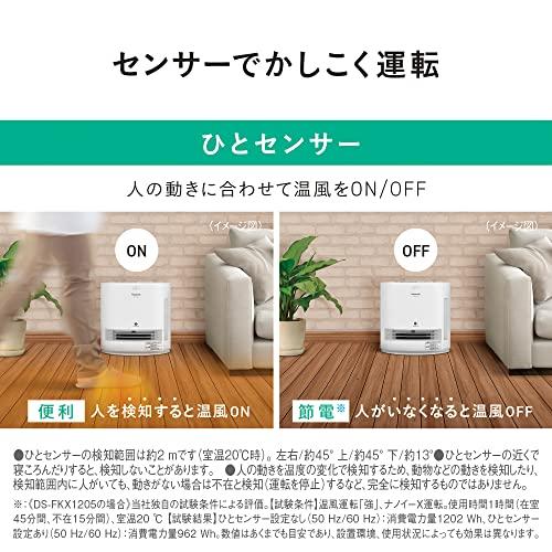 3営業日以内に発送≪新品未開封品≫:温風と一緒に、たっぷりのうるおいをお届け。ナノイーX 搭載 加湿セラミックファンヒーターナノイーX搭載で、1年中清潔に。効果の決め手、「OHラジカル」の濃度が10倍にアップ。さまざまな空気の汚れを抑制、イヤなニオイもすっきり。業界トップクラス※のパワフルな温風とたっぷりの加湿量。乾燥が気になる冬も、温風と一緒にうるおいもお届け。※DS-FKS1206、温風「強」時の消費電力1250 W(50 Hz)。2022年8月2日現在。