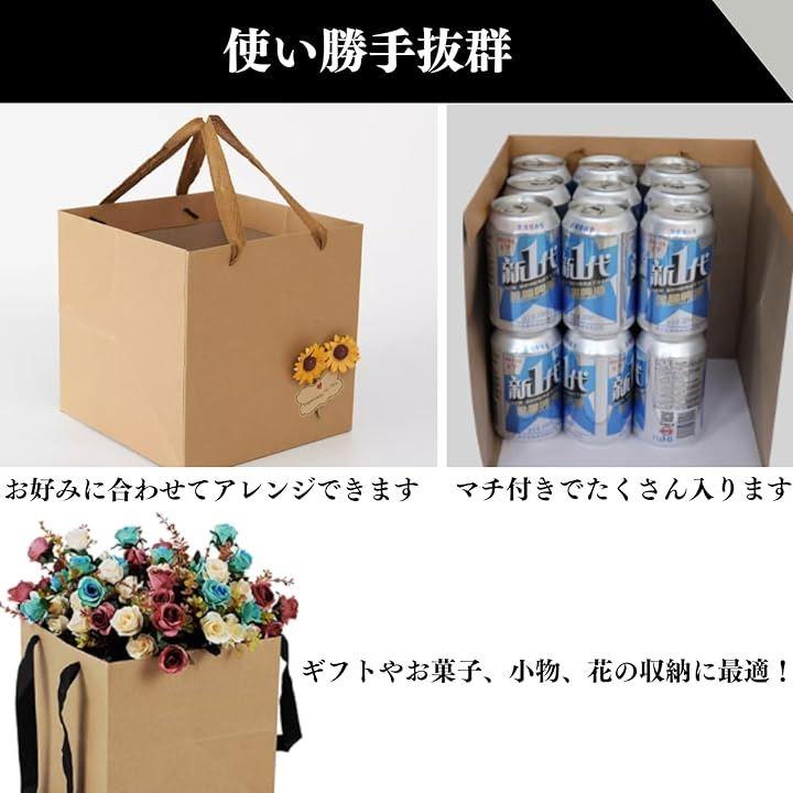 20cm幅広のマチ付き紙袋は、ケーキやブーケなどの大きな贈り物をラッピングするのに便利です。