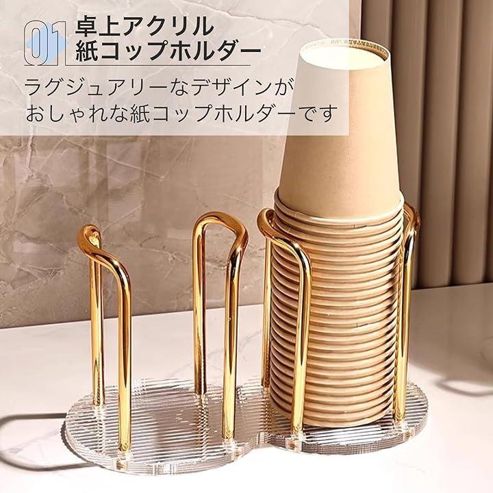 「卓上アクリル紙コップホルダー」ラグジュアリーなデザインがおしゃれな紙コップホルダーです。