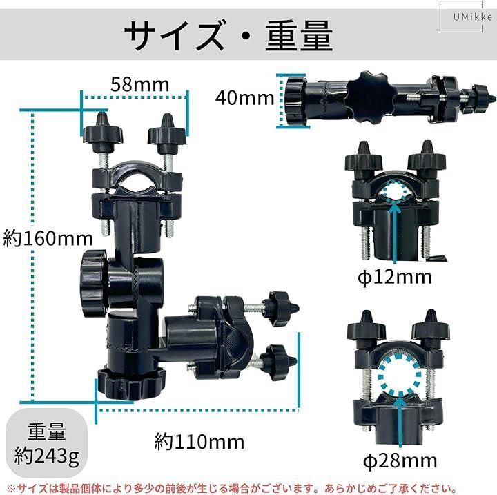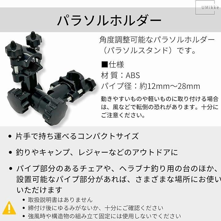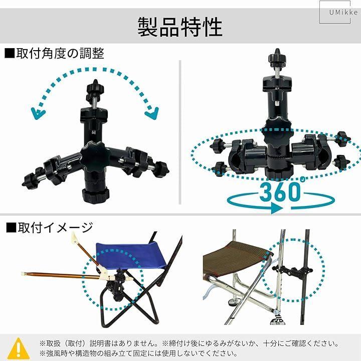 パイプ部分のあるチェアや、ヘラブナ釣り用の台のほか、設置可能なパイプ部分があれば、様々な場所にお使いいただけます。