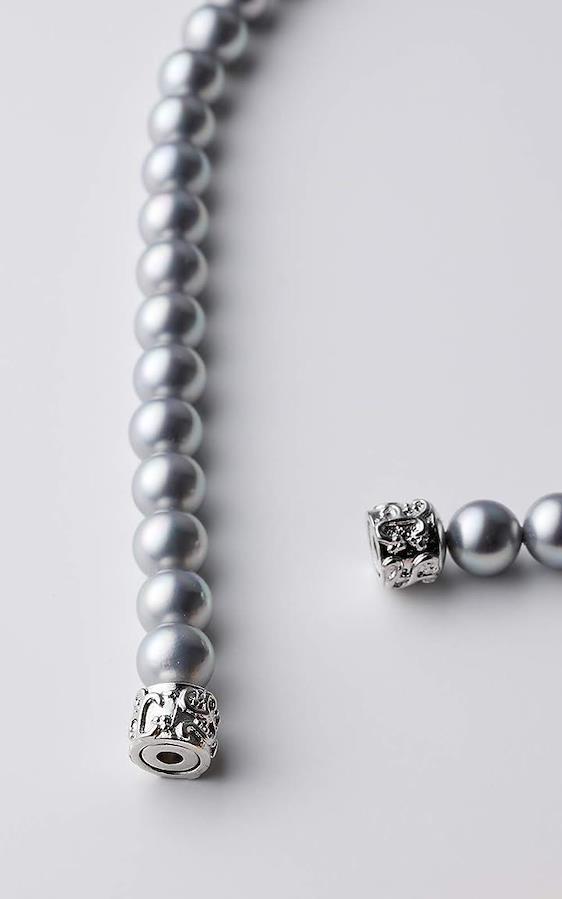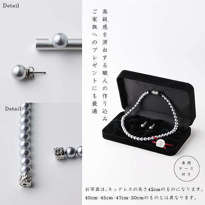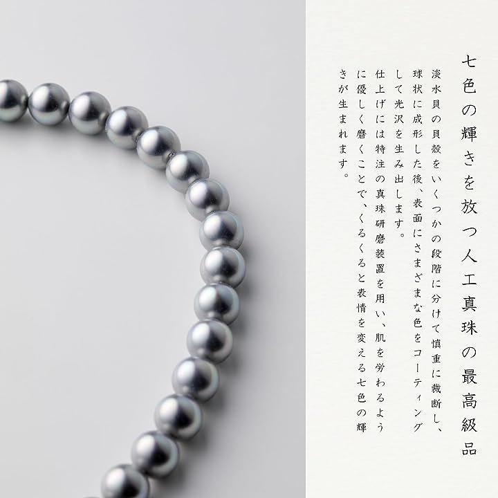 貝パールの輝き・光沢・色彩ともに美しく、照り(てり)の質を追求した人工真珠を使用。