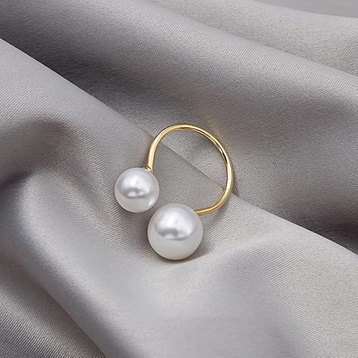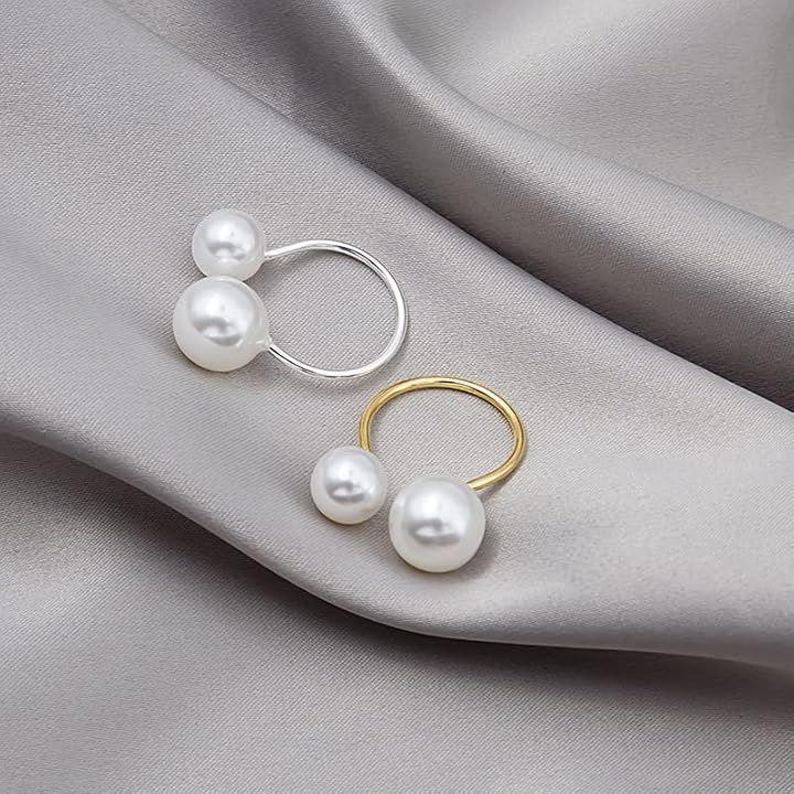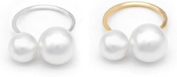 大小2粒のパールを両端から包み込むように配置したデザインが印象的なパールリングセットです。