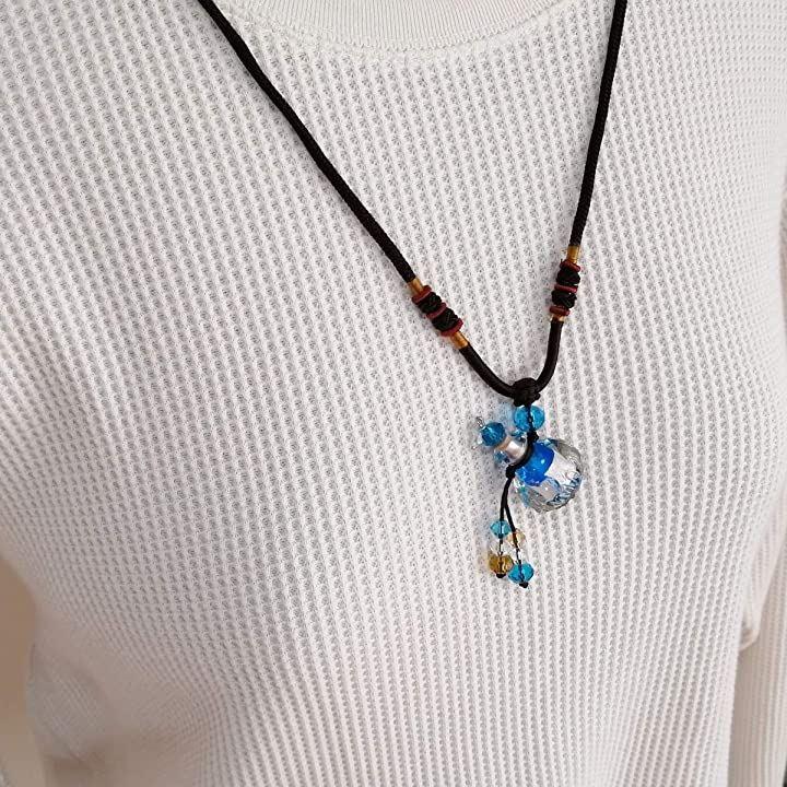小さくてかわいい、カラフルなガラス製の香水入れペンダントです。
