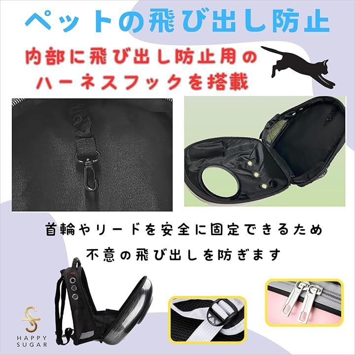このバッグは内部に飛び出し防止用のハーネスフックを搭載しており、首輪やリードを安全に固定できるため、不意の飛び出しを防ぎます。