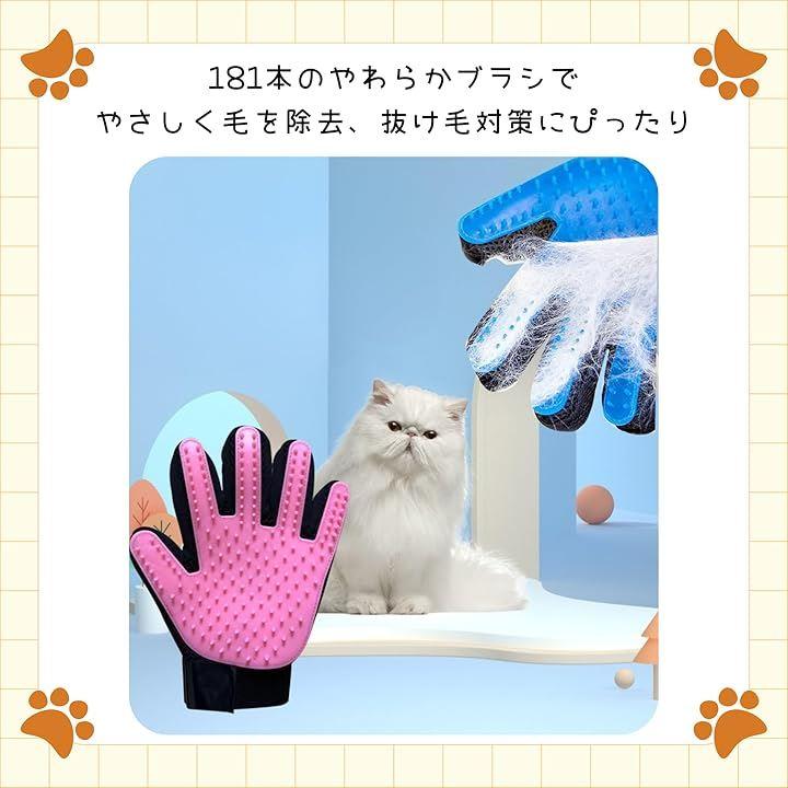 「181本ブラシ」このペットブラシグローブは、181本の柔らかいシリコンブラシが付いており、ペットの毛を優しく取り除きます。