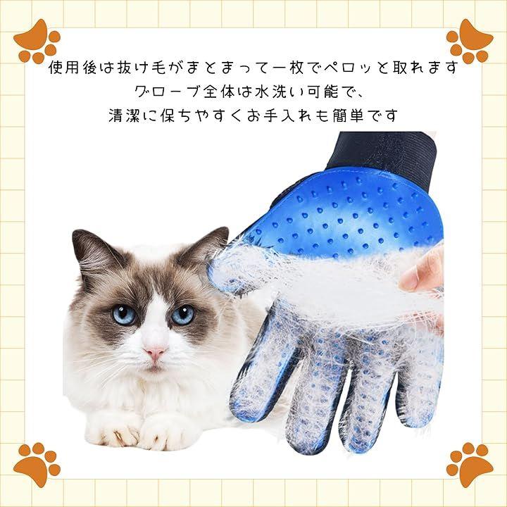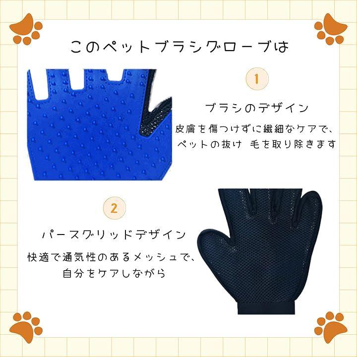 「皮膚に優しい」このグローブは、ペットの皮膚に優しい素材で作られており、敏感肌のペットにも安心して使用できます。