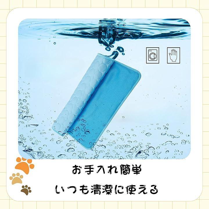 「快適な冷却効果」このペット用ひんやりマットは、熱伝導性の高い繊維素材を使用しており、ペットが触れるだけで涼しさを感じられます。