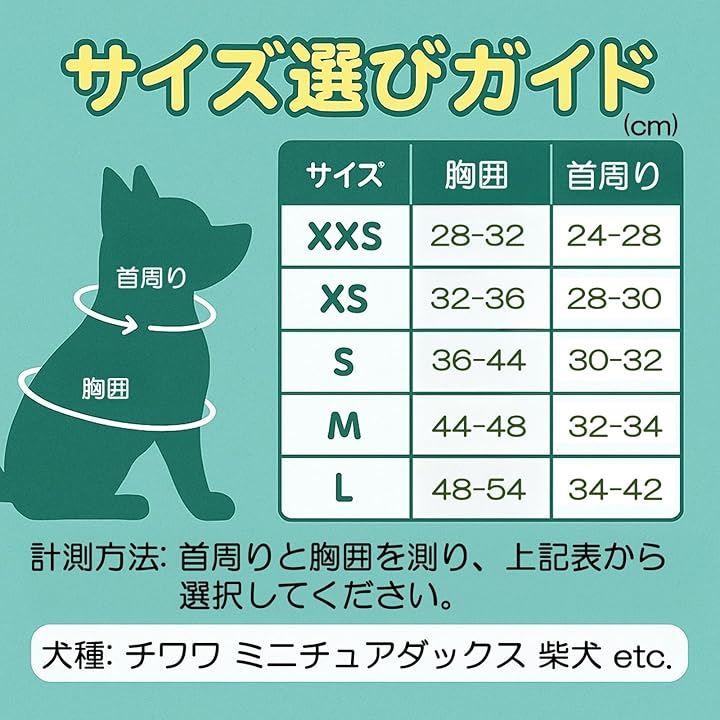 各サイズはペット体重XXS 1-3kg、XS 3-4.5kg、S 4.5-7kg、M 7-10kg、L 10-12.5kgを目安にお選びください。