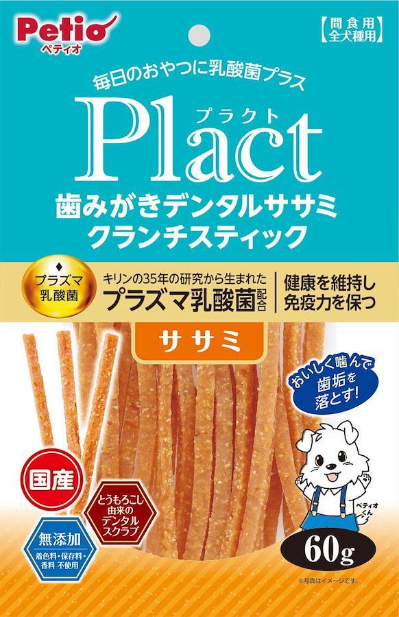 Plactはペットの健康を考えて乳酸菌をプラスしたブランドです。おいしく食べやすいササミの細切りにとうもろこし由来のデンタルスクラブを配合。毎日美味しく歯みがきできる! 着色料・保存料・香料無添加。