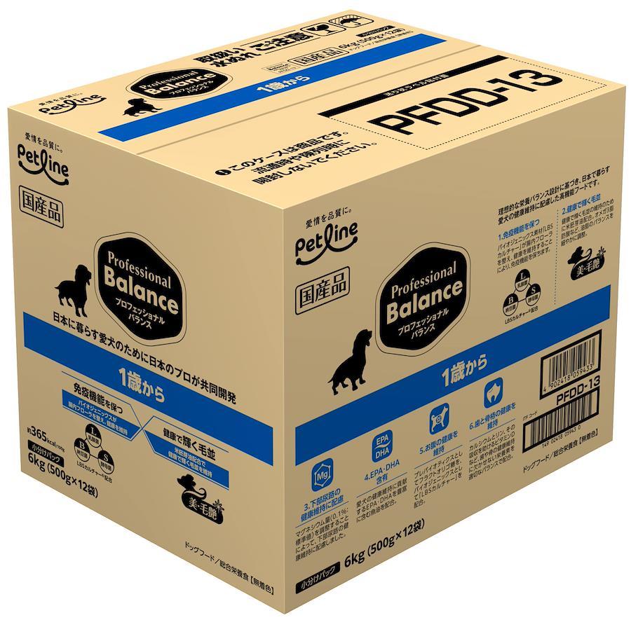 プロフェッショナルバランスはワンちゃんを「腸から元気に」をコンセプトに作られたフードです。健康的な成犬の体格をサポートするために考えられた適切な栄養バランス。しかも成育環境を配慮した低カロリー・低脂肪設計の国産フードです。健康に役立つ素材として注目される乳酸菌、納豆菌と酵母菌の共棲発酵培養物(LBSカルチャー)、さらに抗酸化成分”ビタミンEとC”と”ブドウ種子エキス”を配合。この優れた栄養バランスで健康な体調を保つことにより、愛犬が本来もっている免疫力の維持を助けます。<総合栄養食>