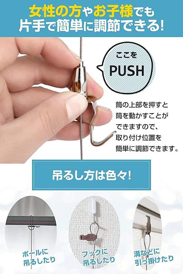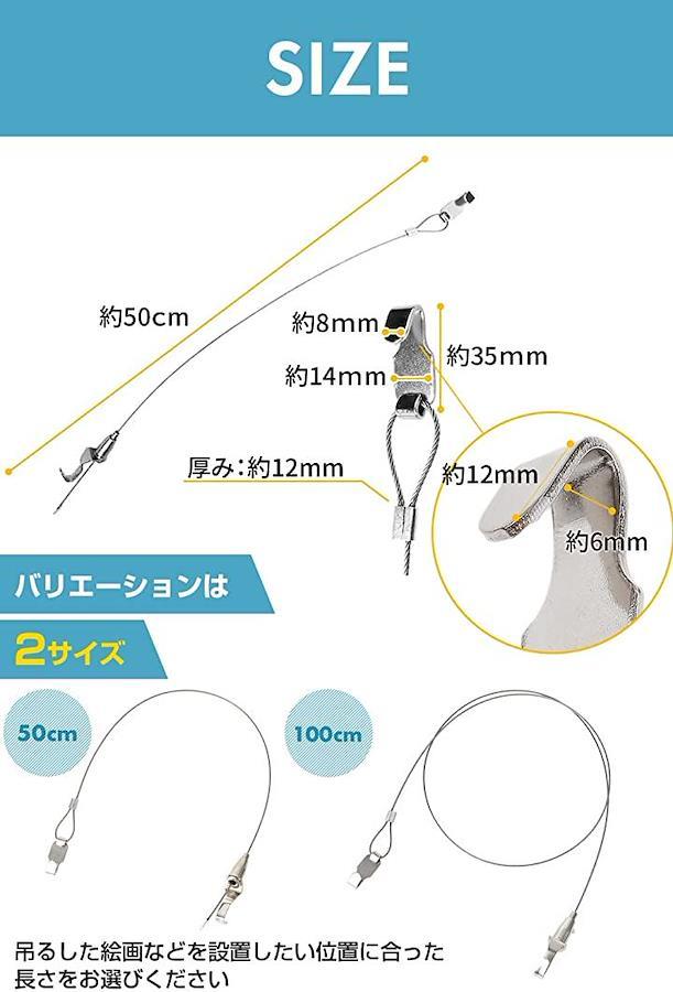 「製品性能」長さ0.5m~1.5mのステンレス製ワイヤーは、優れた防錆性と耐久性を備えており、使用荷重は約40kgです。
