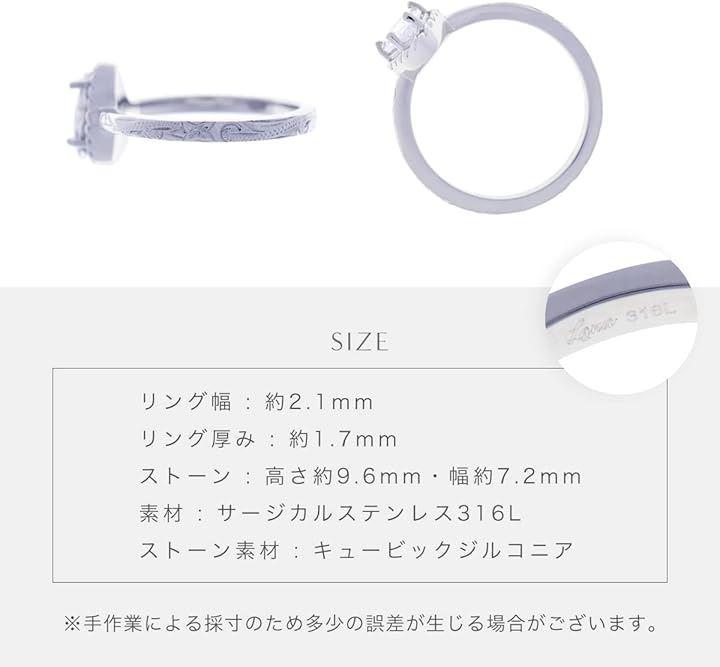 サイズ リング幅 : 約2.1mm リング厚み : 約1.7mm ストーン高さ : 約9.6mm ストーン幅 : 約7.2mm