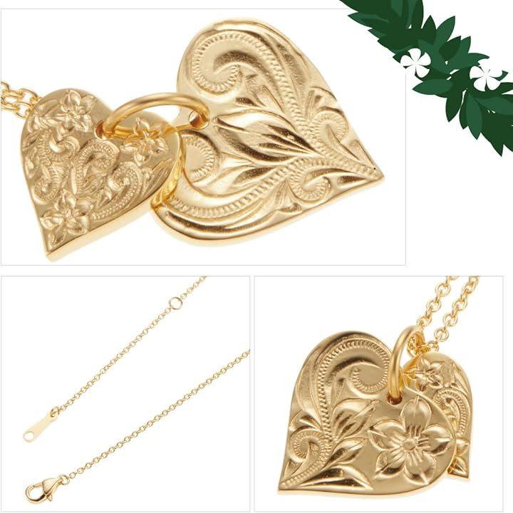 大小のハート型が揺れ動く ダブルプレートのネックレスです。