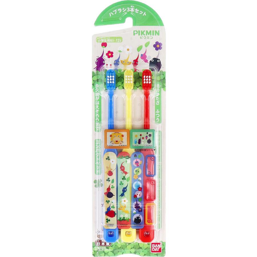 「ピクミン」のハブラシ3本セットが登場!ハブラシはカラフルな3色入り。●奥歯まで磨きやすい先の丸いコンパクトヘッドで、お子様にピッタリのサイズです。●ハブラシに貼るデザインシールが3枚付いているので、好きな色に好きなデザインを付けて楽しめます。●外出先や学校で使用する際に便利な、お名前保護シールの他、好きなところに貼って使えるおまけシールも2枚付き!●歯グキを痛めない丸い毛先。●お子様が握りやすく、保護者の方が仕上げ磨きしやすい太いグリップ。●正しい握り方がわかりやすい親指ストッパー。●小学生用6才~12才。永久歯がはえそろうまで。