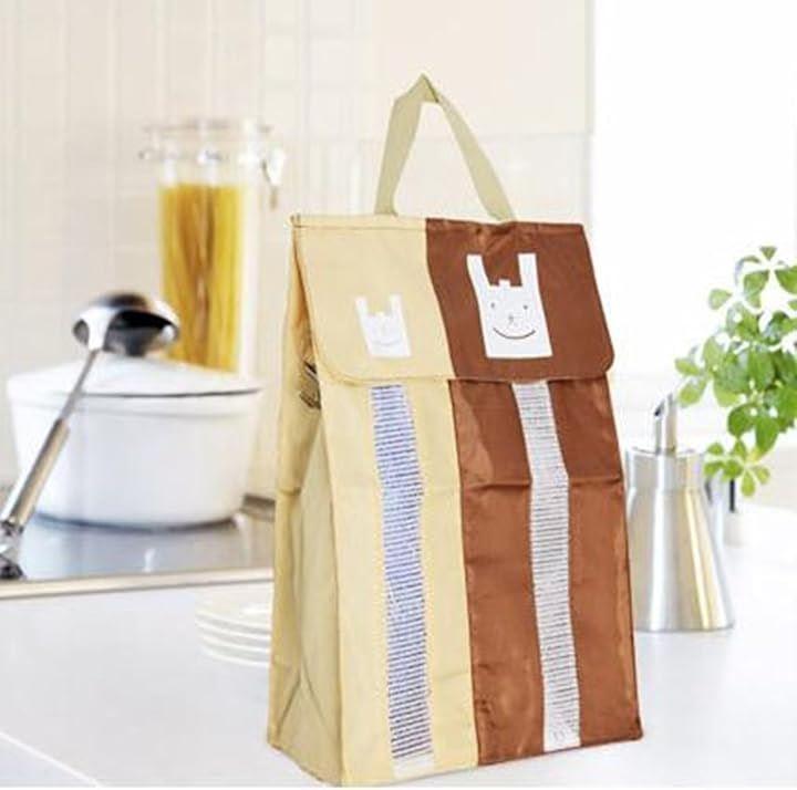 このレジ袋ストッカーはスーパーやコンビニのレジ袋、サッカー台(袋詰め台)の小さいポリ袋をご自宅で再利用する際、大小ダブルの収納ポケットに分けて収納することができます。