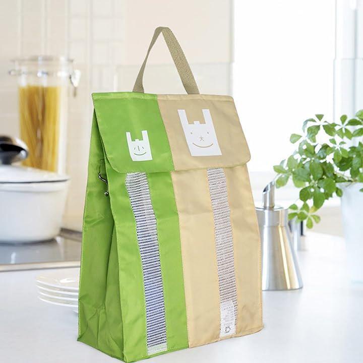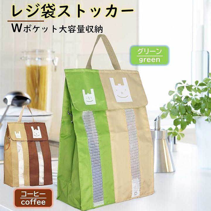商品詳細:レジ袋ストッカー 「カラー」 2種 グリーン/コーヒー 「材質」 ナイロン 「用途」 レジ袋、ポリ袋の収納取出し/ペット用マナー袋などの収納取出し 「特徴」 大小ダブルポケット・壁掛け・大容量・サイドポケット装備(片側のみ)・サイドフック装備(片側のみ) 「重量」 約83g 「SIZE」 33.5x11x23.5cm