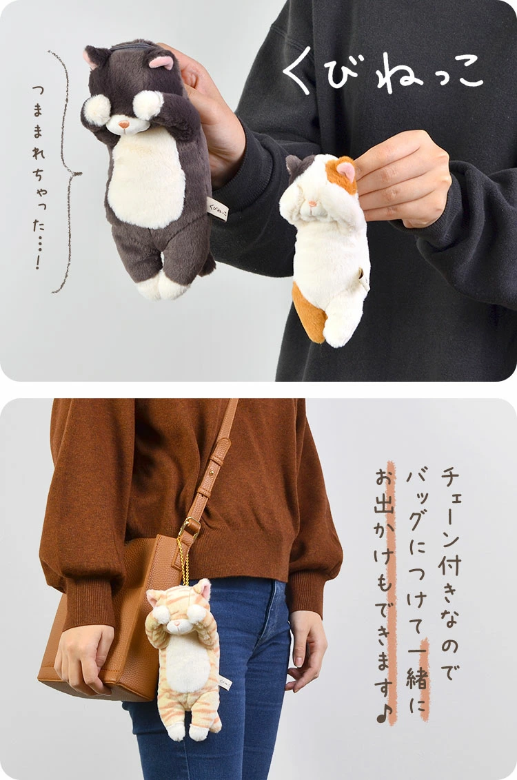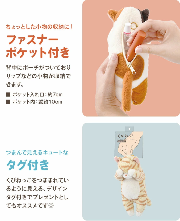 【くびねっこ マスコットポーチ】動物好きさんに刺さりまくる…!悪さをしてくびねっこをつままれちゃった動物の姿をモチーフにした【くびねっこ】シリーズのマスコッチポーチです。「すみません、やっちゃいました…」と思っているような姿が可愛くてたまりません♪カニカンつきキーチェーン付きで取り付けも簡単♪見るたびに癒されること間違いなし!