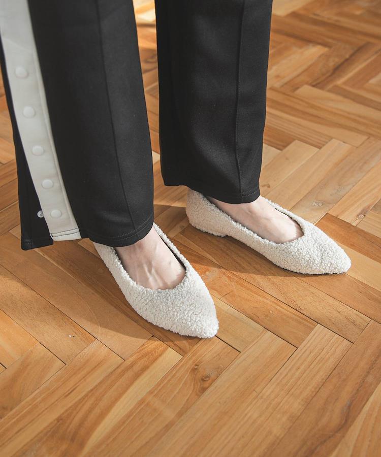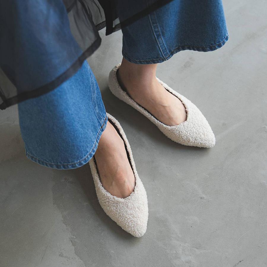 【Design】ポインテッドトゥの大人カッコイイ雰囲気にプードルファーで甘いエッセンスをプラスして。大人可愛い足元を演出してくれます。