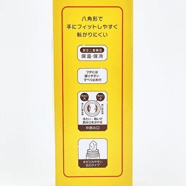 踊ってるようなピカチュウが可愛いステンレスマグボトルです。 珍しい八角形の形は握りやすく転がりにくい♪ 冷たい・温かい飲み物両方OK! W飲み口でサイズが大・小あり、冷たい熱いを飲み分けやけど防止にも。 広口タイプで氷も入れやすく。洗いやすいのも嬉しい♪ ピカチュウ好きのお子さまにオススメです☆彡 【容量:500ml】